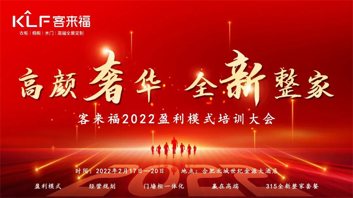 2022年2月17日-20日為期四天,以“高顏奢華,全新整家”為主題的客來福2022盈利模式培訓(xùn)暨3.15活動啟動大會在安徽合肥圓滿落幕,是對既往奮斗歲月的總結(jié),也是奮斗新征程的開啟。在2021年作出突出貢獻(xiàn),業(yè)績輝煌的經(jīng)銷商在這里不僅得到表彰和肯定,也對未來的發(fā)展收獲了信心,希望在全新戰(zhàn)略格局的帶領(lǐng)下,以創(chuàng)新融合的發(fā)展思維和專業(yè)奮進(jìn)的心態(tài)共同開啟客來福品牌未來新篇章,讓我們勠力同心,一起聚勢謀遠(yuǎn),共展虎年宏圖!
